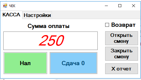 - Возможность открыть/закрыть смену и снимать X-отчет